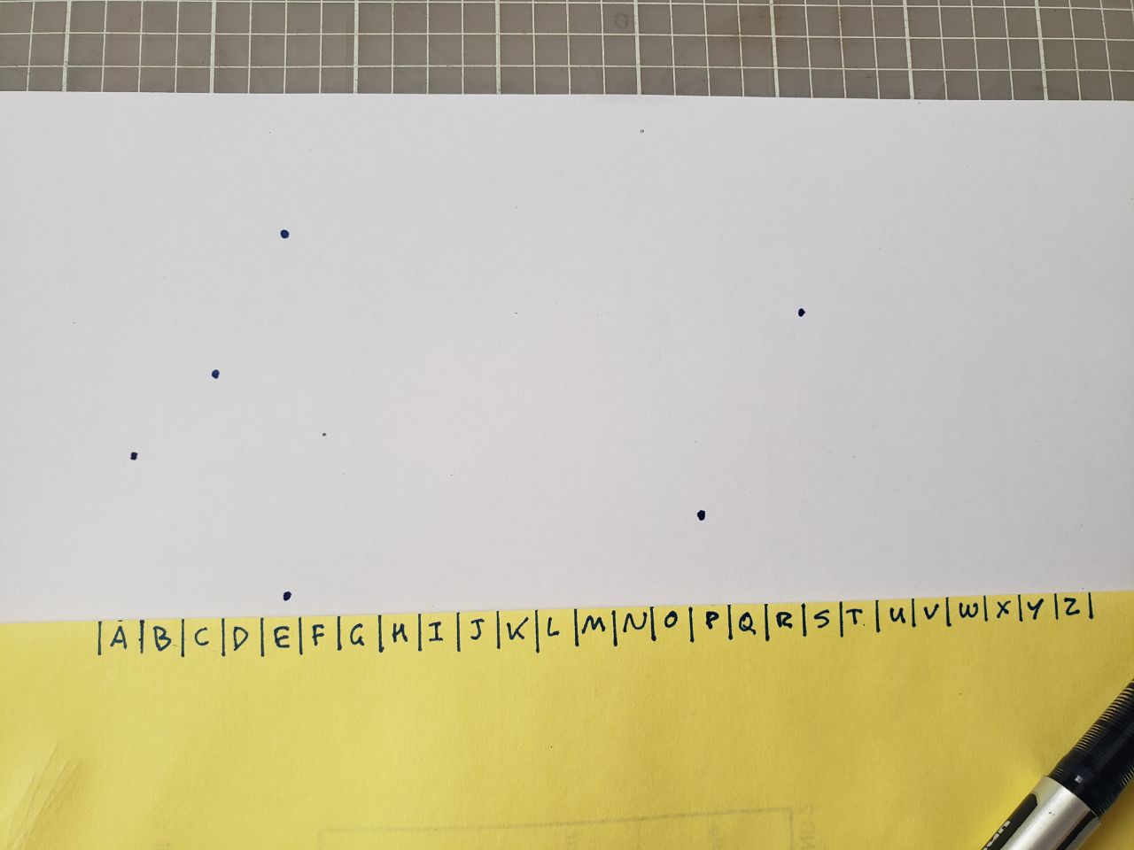 The most important element we need is our alphabet! Decoding this message relies on lining up letters to the markings, whatever format they are in.