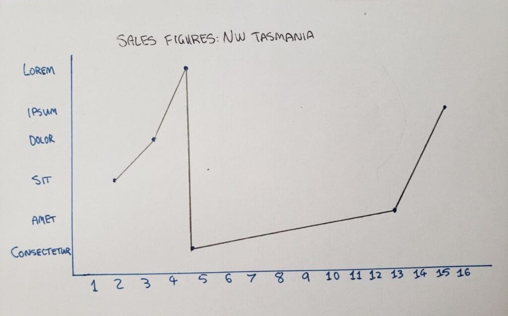 Connecting the dots helps disguise them by making them into a line graph. Give it a mundane title “Sales Figures for NW Tasmania 2016” and you’re all set to hide our message economically and let your recipient zig and zag their way down to decode it.