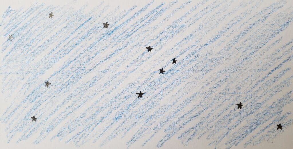 Then get marking! As an example, in your top row put a dot in line with ‘E’. Move your ruler down the page and put another dot at “S”. For this one let’s keep equal distances until you mark out ‘C’, ‘A’, ‘P’ and ‘E’ again.
